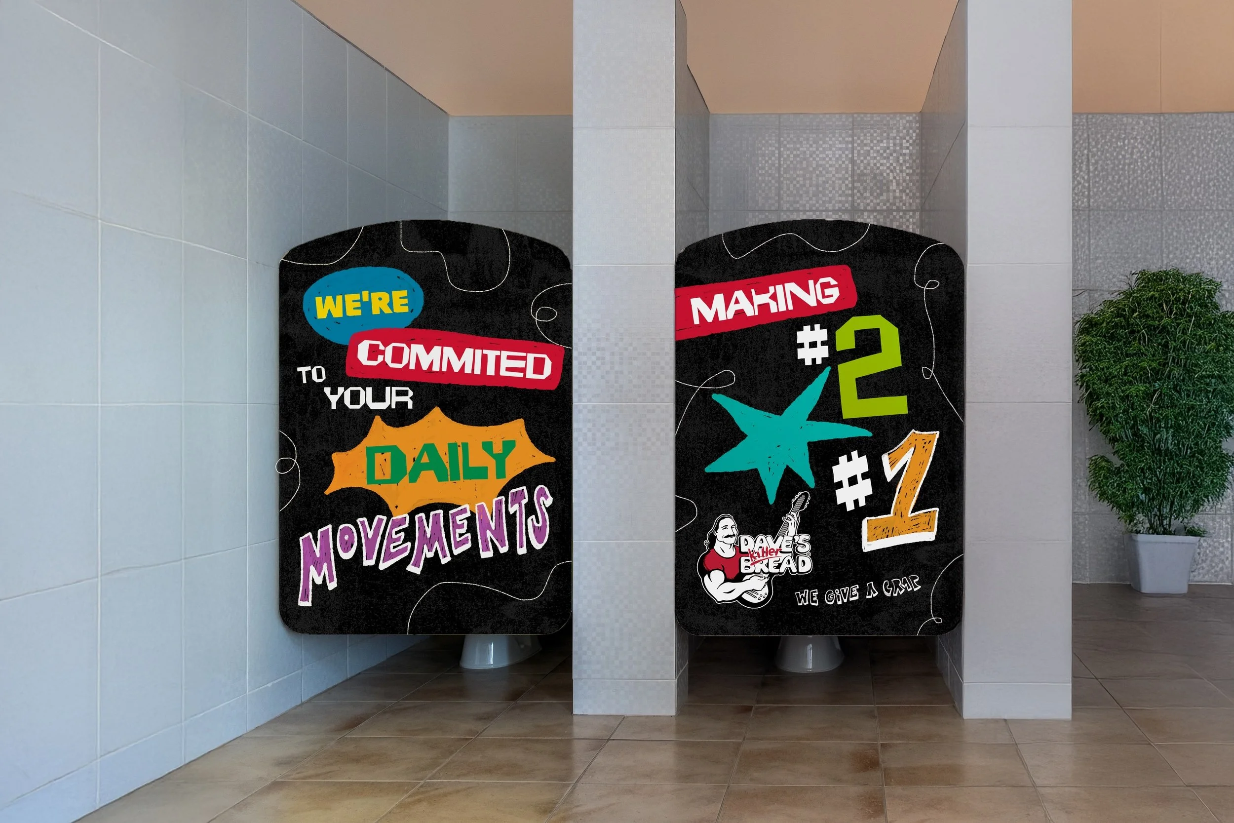 Man-on-the-street interviews documented real conversations sparked by the bathroom plop up’s — with participants openly discussing fiber and bathroom habits for free Dave’s Killer Bread Organic Snacks in exchange.