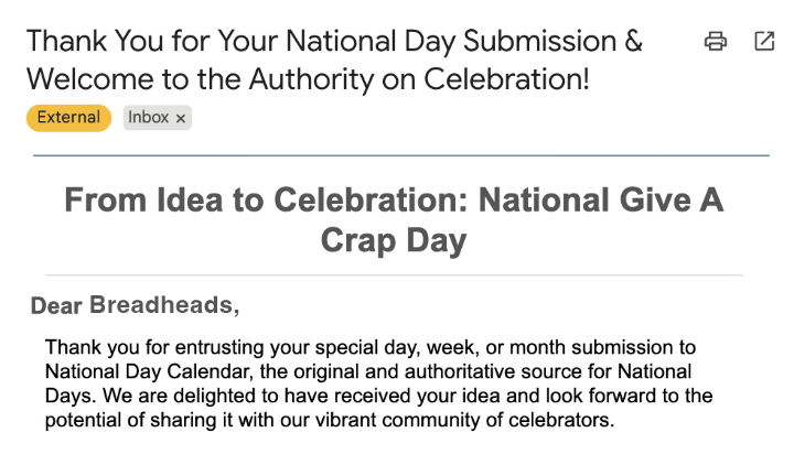 To launch the movement, we claimed May 12th as National Give a Crap Day. Because May 11th is National Eat Whatever You Want Day — and fiber isn’t exactly the first thing people reach for.
